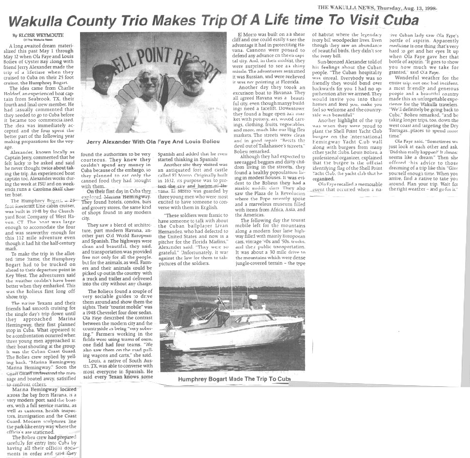 In 1988 she was newly acquired, re-restored and renamed Humphey Bogart. Humphey was then relocated to Florida and in 1998 the adventurous owners took Humphey on a round trip from Key West to Cuba! The trip landed full coverage in the local newspaper. View article.